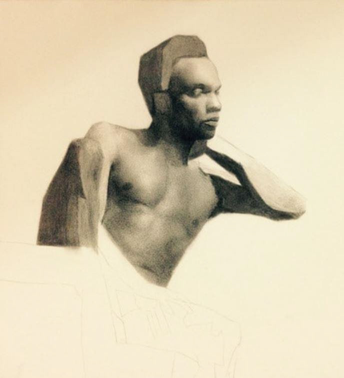 24 x 36 charcoal drawings from life. Sustained pose over 8 sessions.